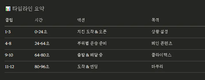 기획 타임라인은 비오 기준으로 되어있는데, 후에 미드저니에서 생성 예정이어서 5초 단위로 재설정 예정!