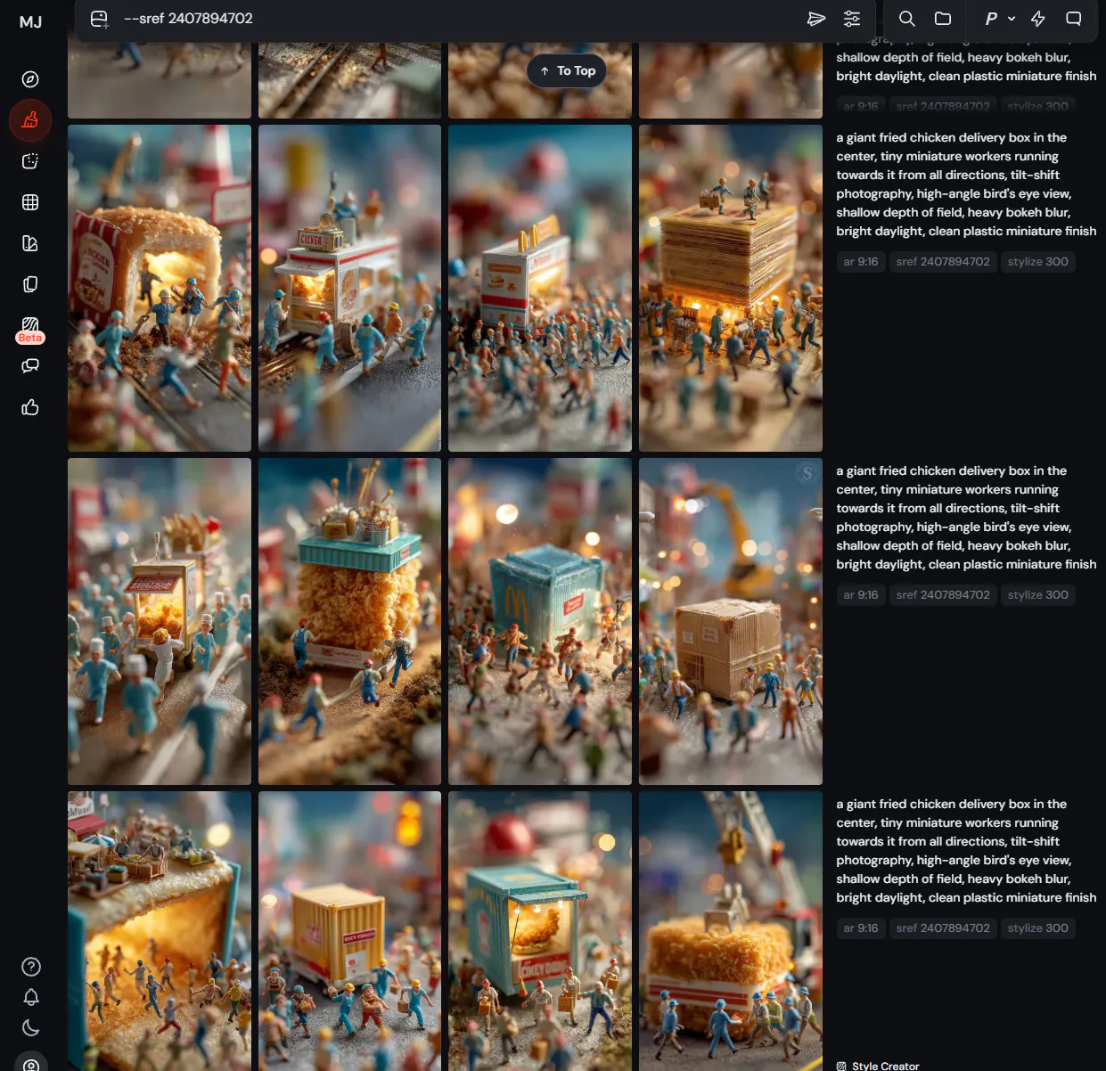 -- sref 2407894702 -- stylize 300 파라미터(미드저니 전용 이미지 생성 옵션의 일종)를 클로드에게 알려준다 -> 클로드가 미드저니 프롬프트를 줄 때 이 스타일 이름을 기억하고 프롬프트를 주기 때문에 지속적으로 일관된 이미지 스타일이 나온다.