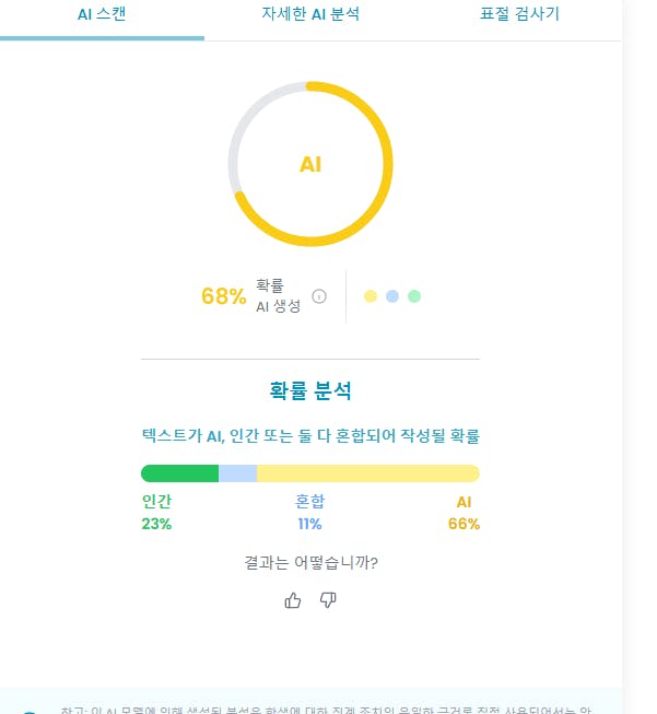 • isgen AI탐색기에서 claude가 작성한 글을 분석해 보았습니다 (AI 확률 68%.. )