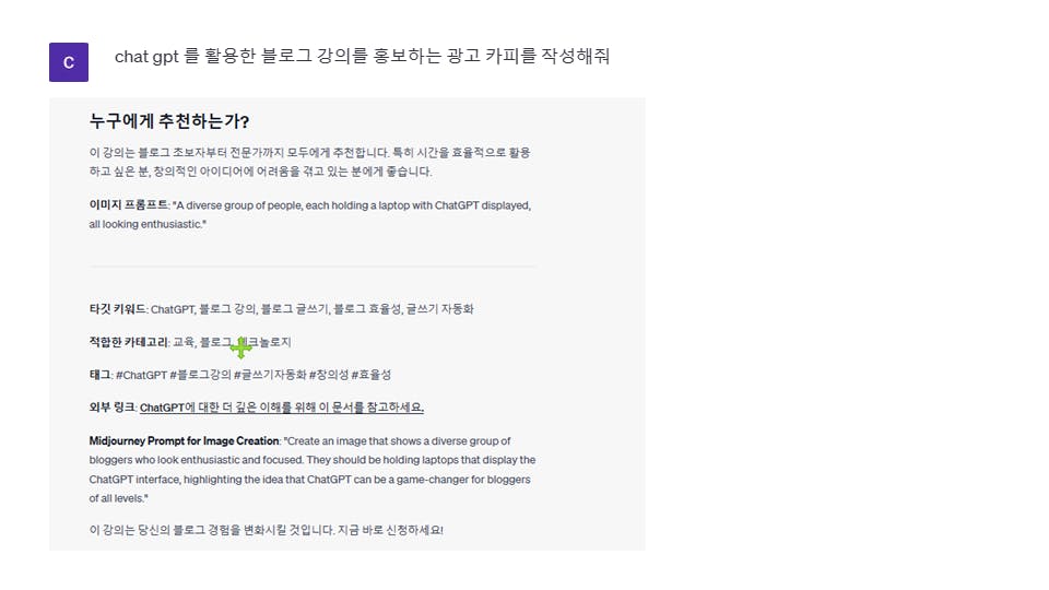 강의명 : chat gpt 를 활용한 블로그 브랜딩 강의