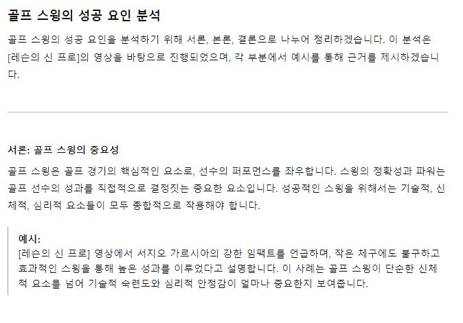 ** 후킹의 예를 보면 강렬한 도입, 공감형성, 문제 제시등의 방법이 부족함. 선수가 아닌 대부분 아마츄어 일반인이 보는 관심에서는 공감형성 등 없고 선수에 준한 도입부임. (다수의 유튜브 영상이 일반인에게 맞추어 있지 않음)