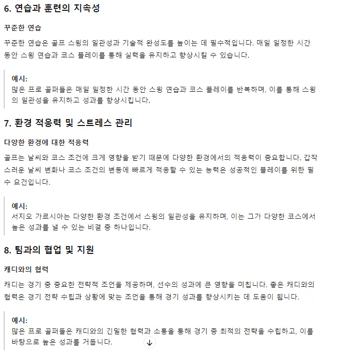 대부분 콘텐츠 내용이 주말골퍼(즉, 가끔씩 필드 또는 연습장에 나가는 이들)에 맞춰있지 않아 공감을 가나 실행이 어려운 콘텐츠로 평소에 어느 장소에든지 실행가능한 팁을 제공하는 것이 좋다고 생각됨.