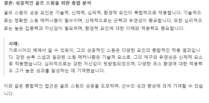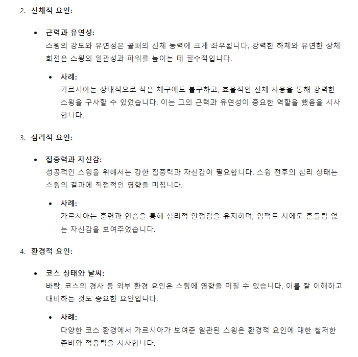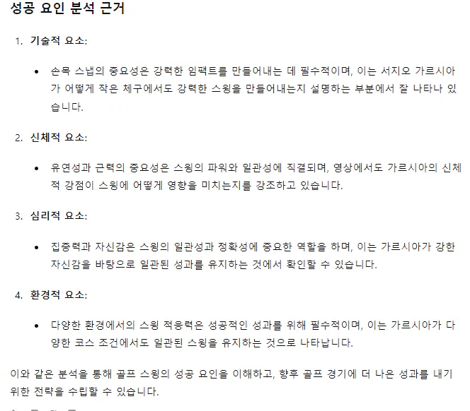 ** 가장 중요하다고 생각되는 것이 스윙메카니즘인데 실질적인 수행 팁과 단계별로 어떻게 해야할지 피드백과 조정 등의 내용이 없음(이것도 일반인이 아닌 숙련된 사람들에게 맞춰진 내용으로 생각됨)