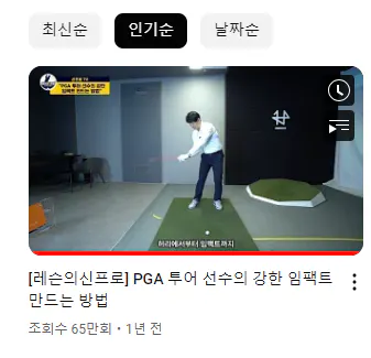 가장 인기있는 콘텐츠(조회수 65만회) 영상(PGA투어 선수의 강한 임팩트 만드는 방법)을 선정했습니다.