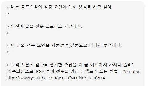 2.스크립트는 Youtube TO Text 확장프로그램에 따라 자동 생성되어 복사하여 챗GPT에게 질문