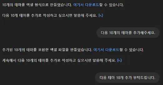 덩어리가 큰 데이터를 만들기 위해 질문을 10개 단위로 쪼개서 요청사항을 만들기
