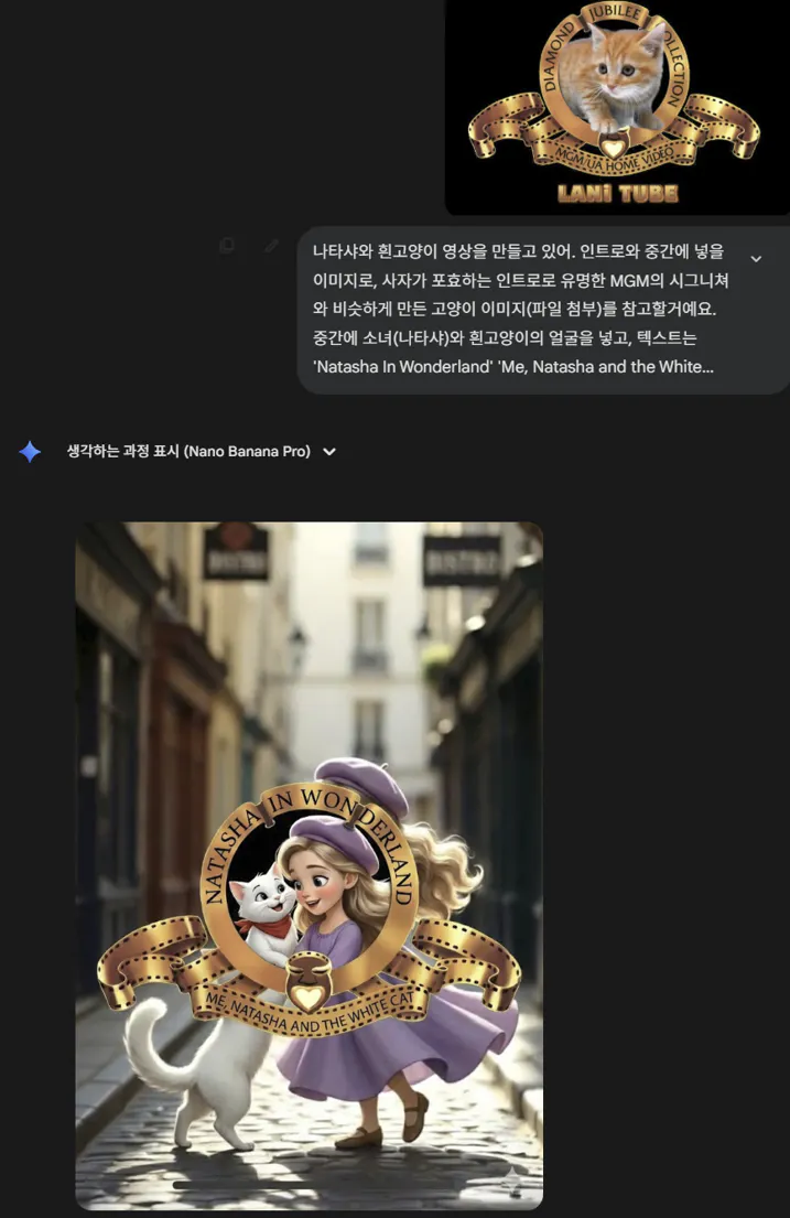 • 브랜드 IP로 제작된 캐릭터를 기반으로, MGM 사자 인트로를 차용한 고양이 이미지를 샘플로 제시. 영상의 인트로용 / 중간 삽입용 이미지를 목표로 생성