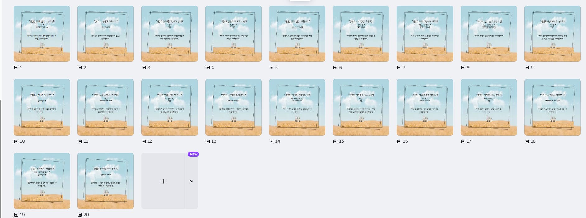 아래와 같이 카드뉴스 20개가 생성됩니다.
