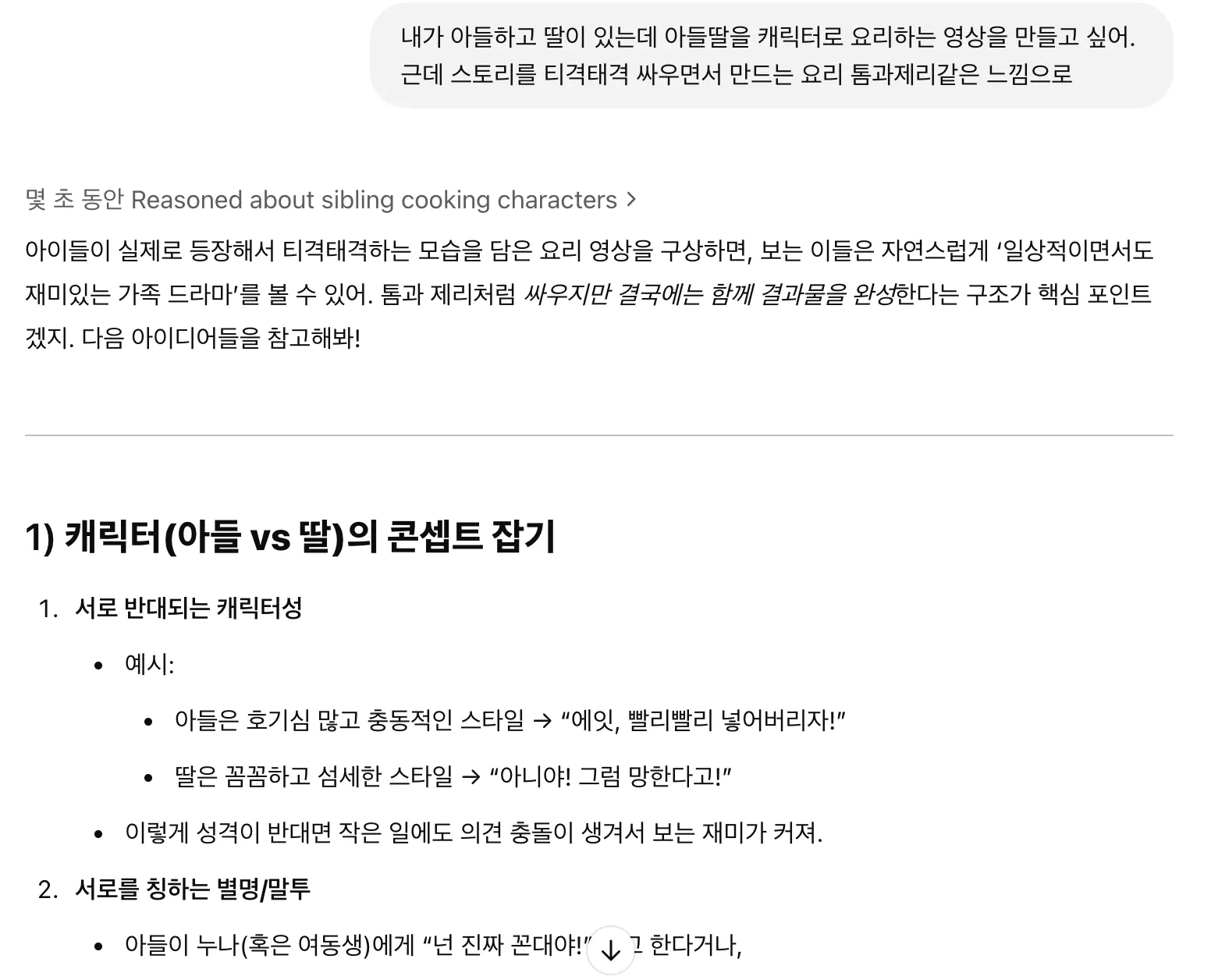 그래서 아이들이 싸우면서 요리하는 영상을 만들어야겠다는 목표를 설정했습니다.