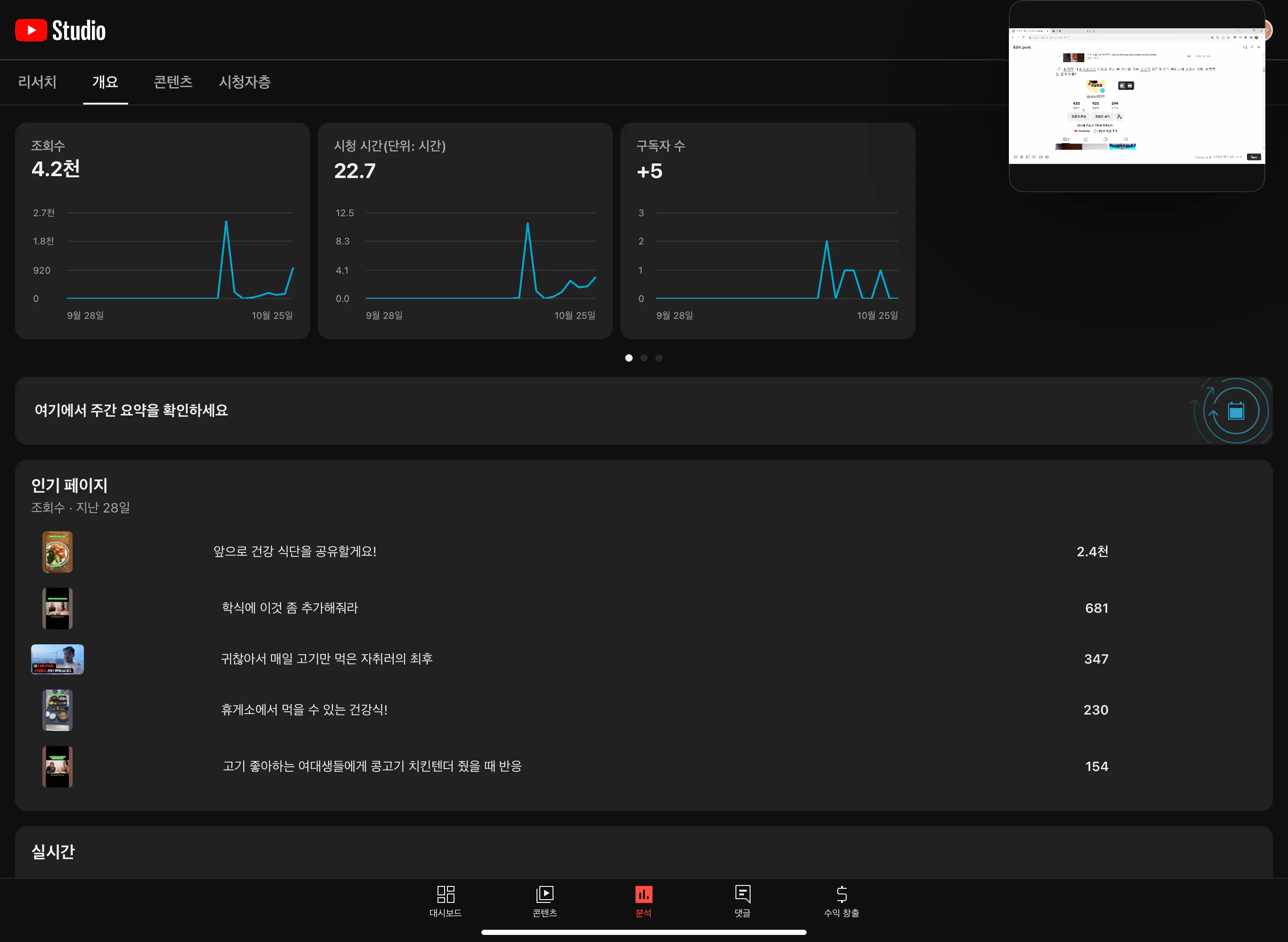 처음 만들자마자 쇼츠가 터진것 외에는 딱히 특별하게 없었다고 생각했는데 롱폼 하나가 특이했습니다.