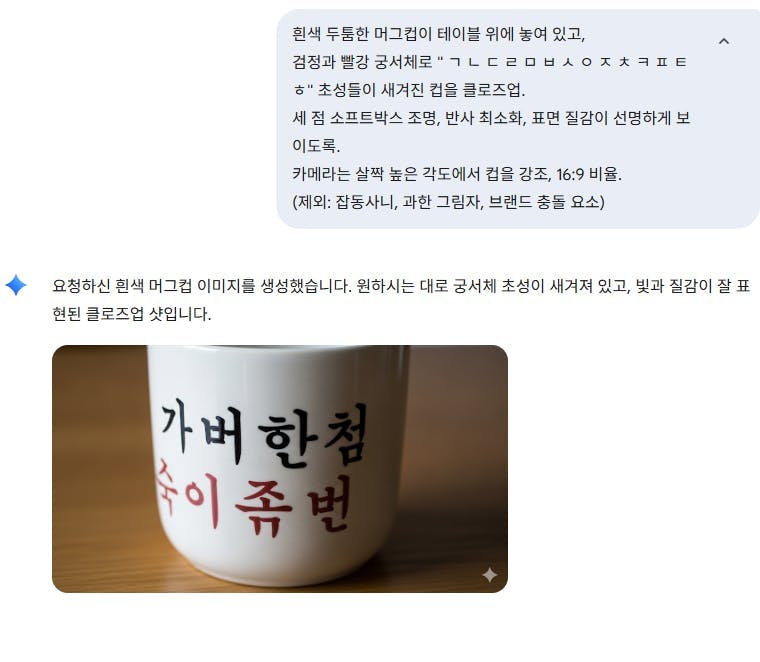 • 나노바나나 외에도 다른 생성기에서도 한글 표현은 일관되게 실패