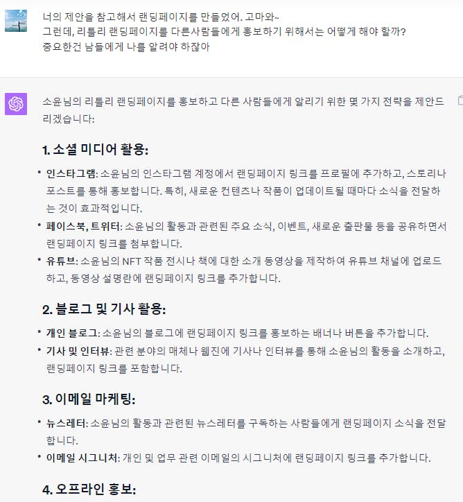 4-4) 나의 리틀리 링크를 제시한뒤 매력적인 홍보방법 부탁하기🖍️