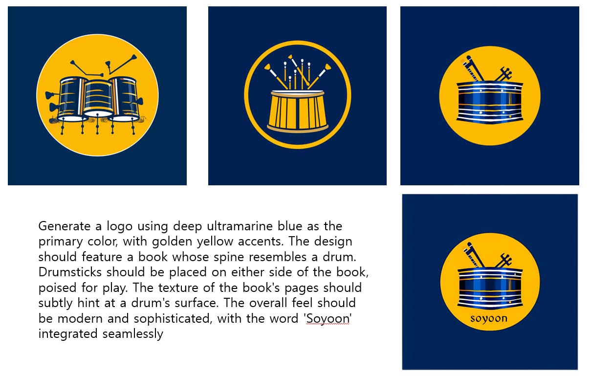 - chatGPT가 제시해준 ‘드럼 비트와 글로 사람들의 심장에 울림을 준다’라는 상징적인 의미로 만들어준 이름인 echoink 가 마음에 들긴 했지만~ echoink 의 echo와 eco의 혼동이 있을 수 있어서 최종적으로 ‘감성 커넥터 소윤’으로 ^^