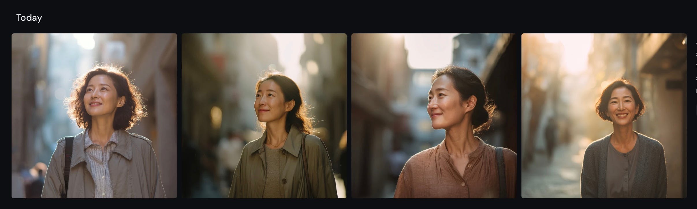 40대 한국 여성이 좁은 도시 골목길을 천천히 걷는다. 카메라는 낮은 앵글에서 뒤를 따라가며 시작하여, 점차 올라가면서 그녀의 앞모습 중간샷으로 전환된다. 그녀의 표정에는 미묘한 결심이 묻어난다. 부드러운 바람이 그녀의 머리카락을 흔든다. 조명은 따뜻하고 황금빛으로, 희망을 상징한다. 그녀는 멈춰서 하늘을 바라보며 깊게 숨을 내쉰다. 카메라는 천천히 그녀의 얼굴을 클로즈업하며 햇빛이 그녀의 눈에 반짝인다.
