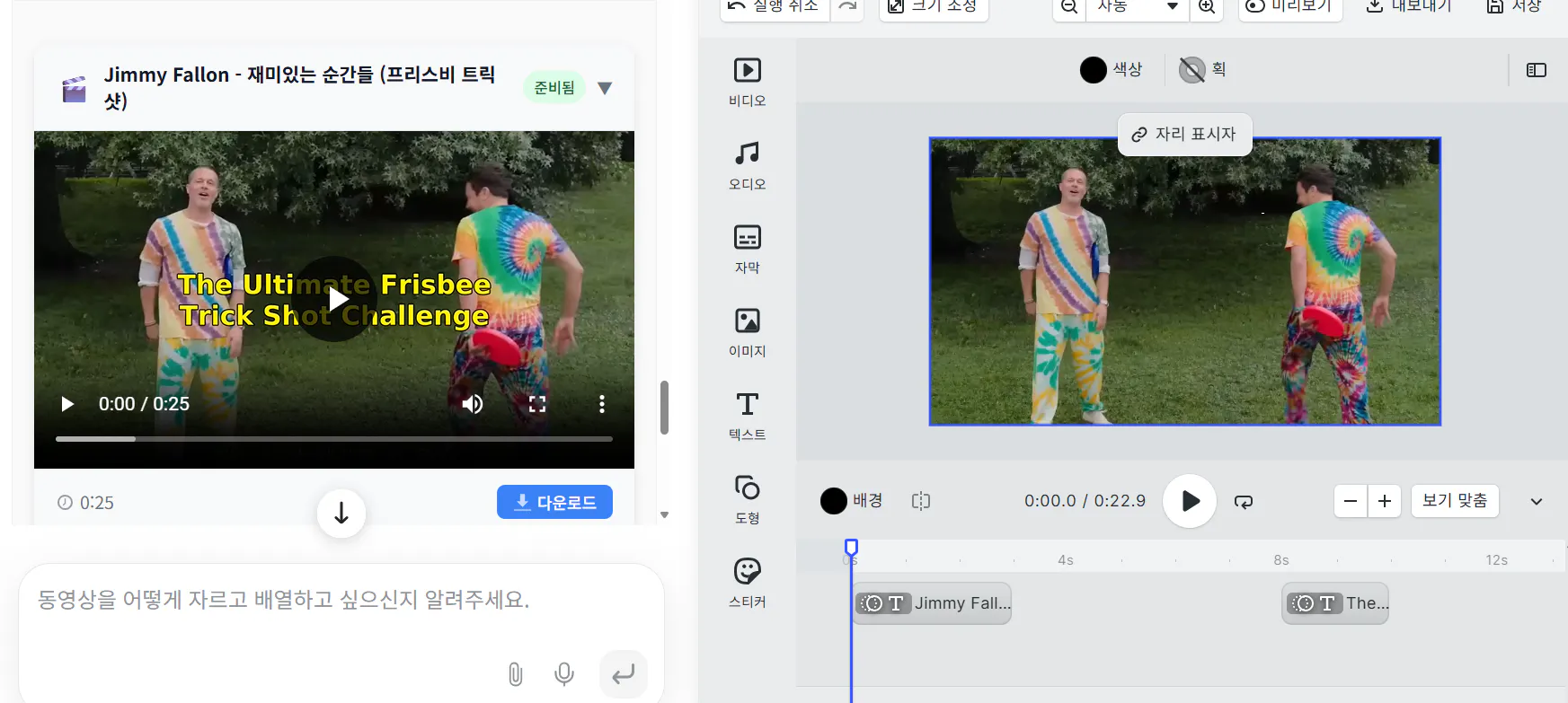 이렇게 편집한 영상은 AI agent가 만들어 준 영상과 별도로 다시 다운로드 가능합니다.