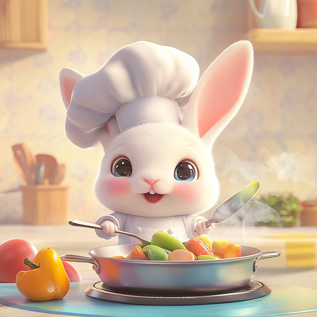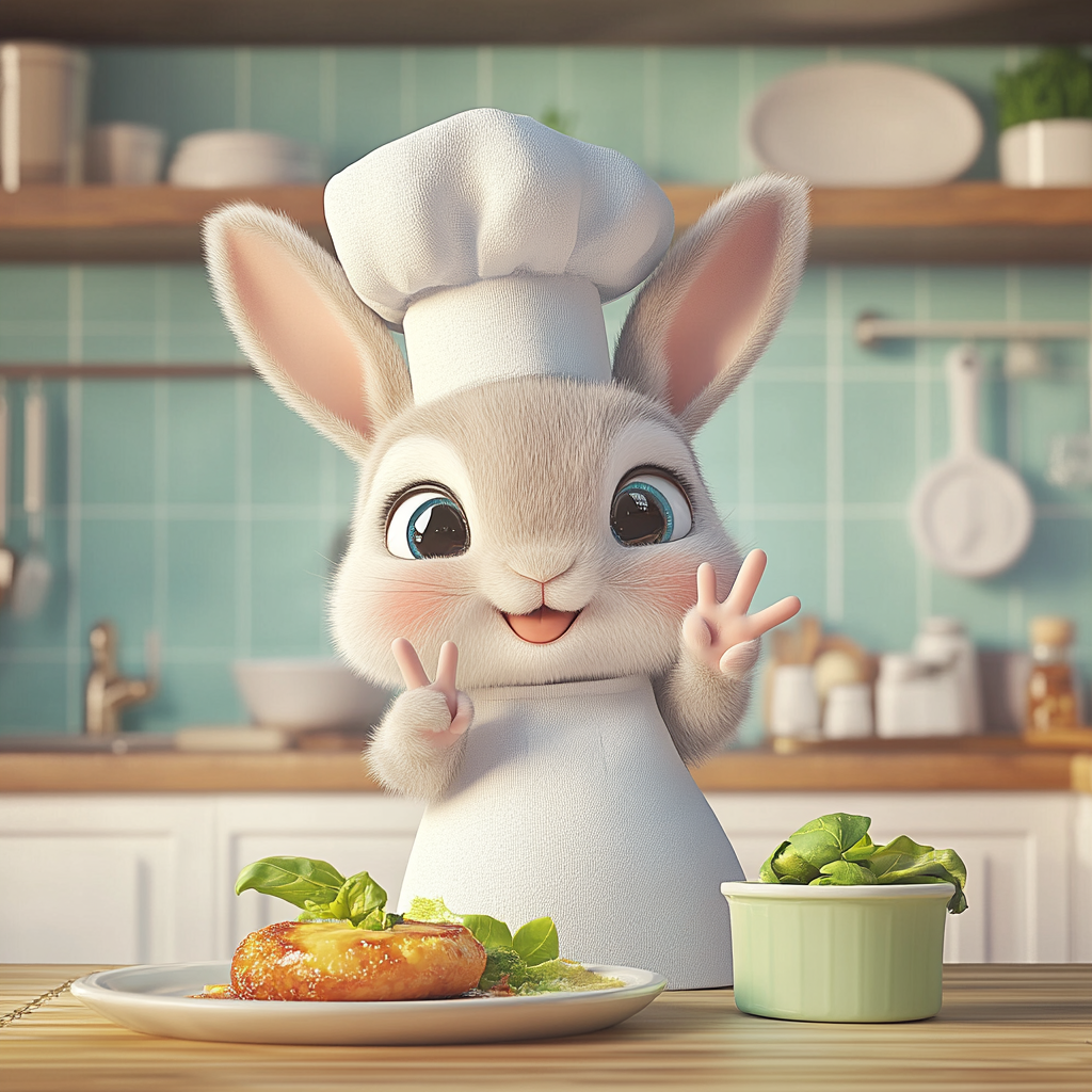 우선 토끼가 요리하는 장면을 만들기 위해 지피티로 프롬프트를 뽑아달라고 요청했습니다.