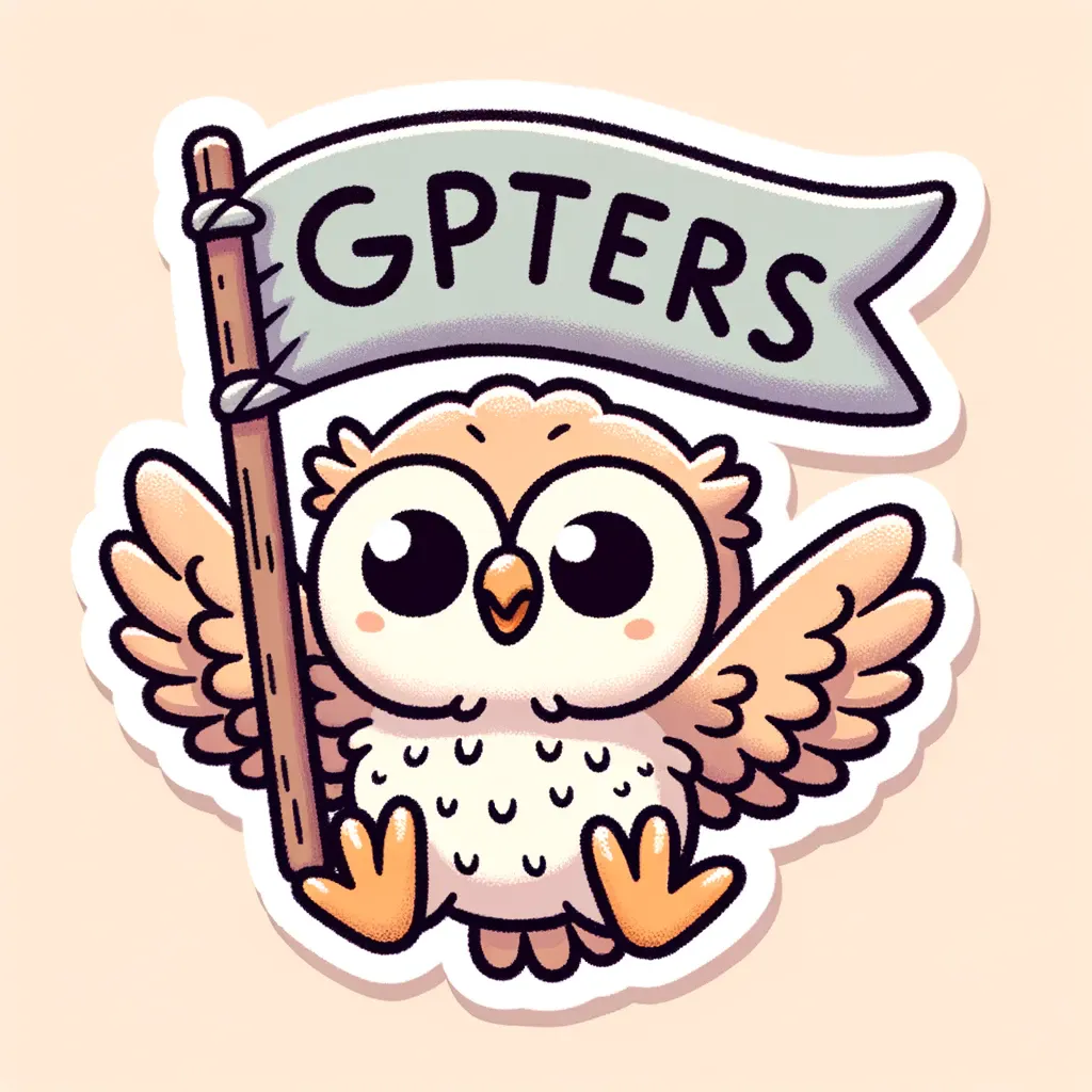 3. 디자인 : 두손을 어깨 높이 깃발을 흔드는 귀여운 아기 부엉이,눈에는 눈동자를 꼭 그려줘