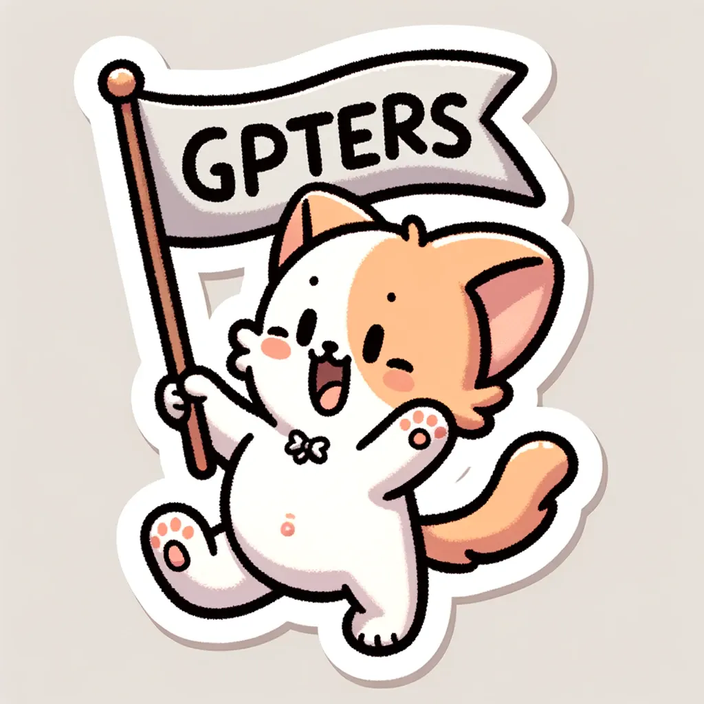 3. 디자인 : 두손을 어깨 높이 깃발을 흔드는 귀여운 아기 고양이