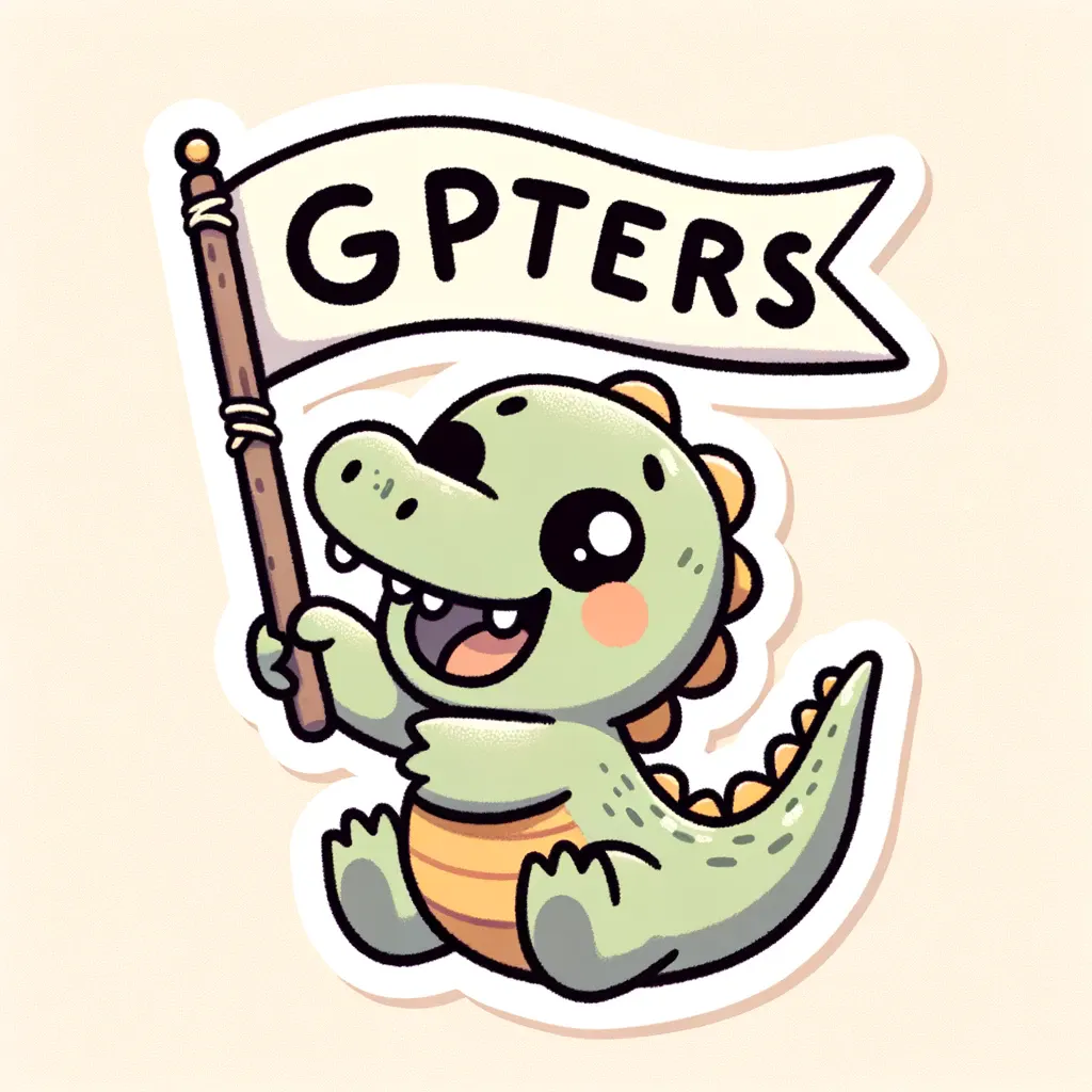 3. 디자인 : 두손을 어깨 높이 깃발을 흔드는 귀여운 아기 악어,눈에는 눈동자를 꼭 그려줘