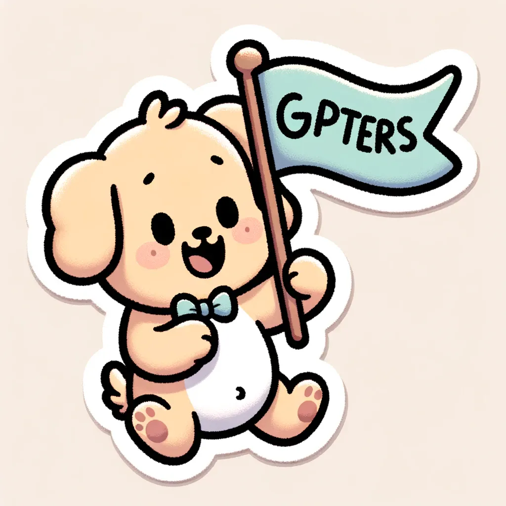 3. 디자인 : 두손을 어깨 높이 깃발을 흔드는 귀여운 아기 강아지