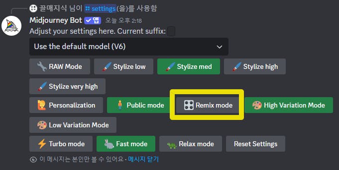 만약 V1~V4 클릭시 해당 이미지를 프롬프트를 좀 더 수정하여 이미지 생성하고자 할 때는 먼저 해줘야 할 옵션이 있습니다