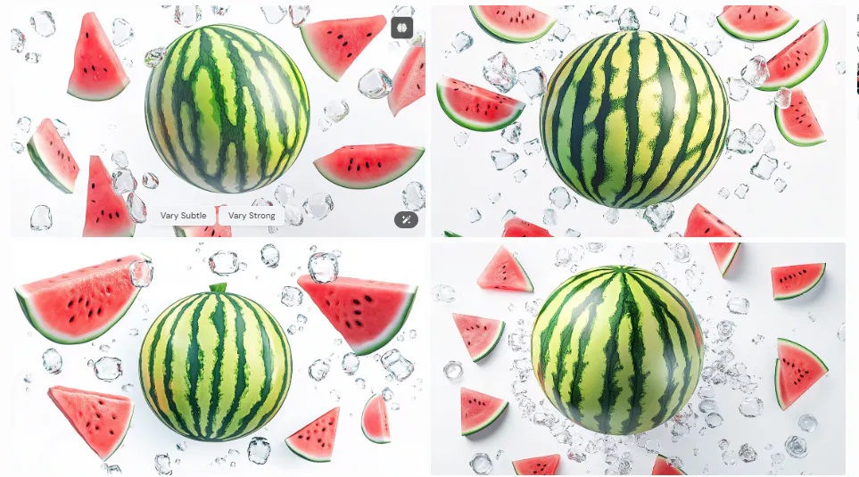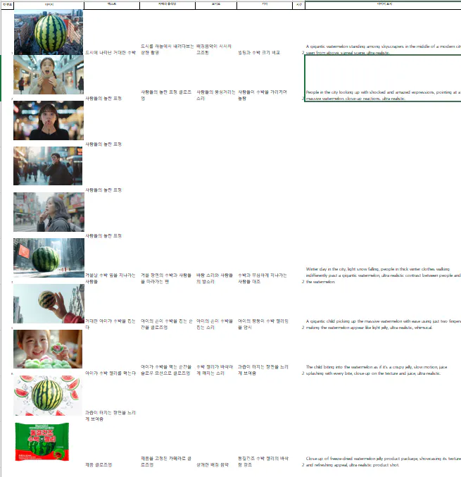 • 음식한번 먹이기, 수박들어올릴때 지구볼처럼 돌아가서 정적인것을 좀 이해 못하는건지... 프롬프트를 잘 못쓴건지 고민하게 됨