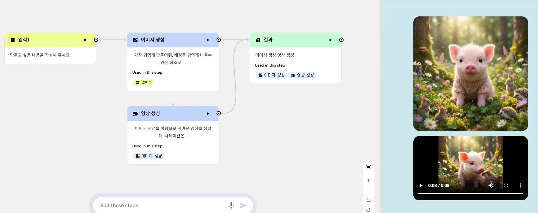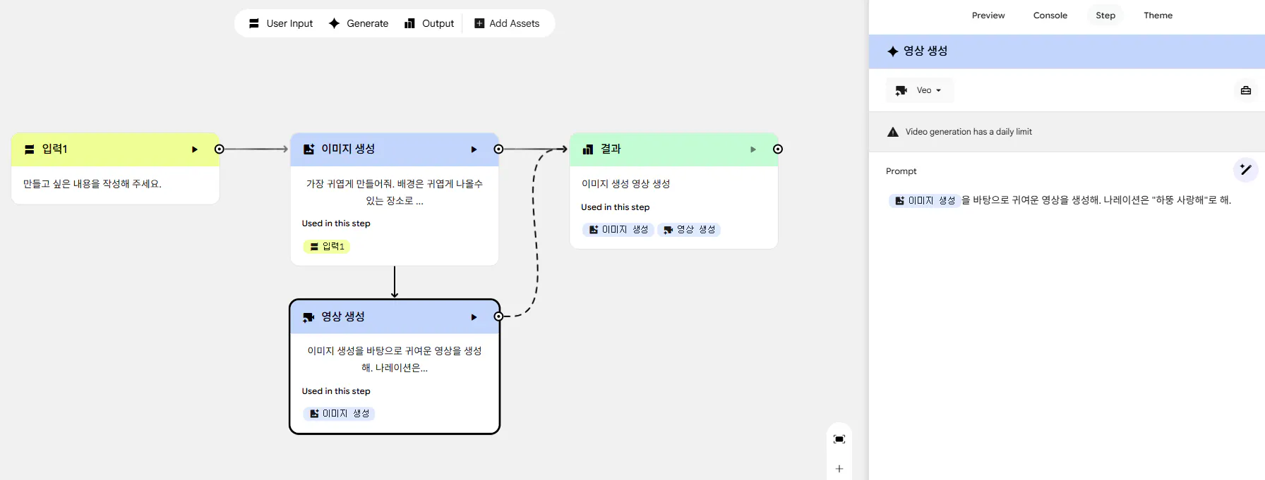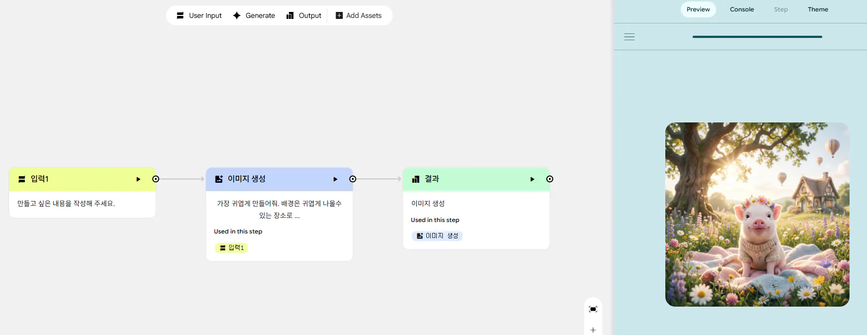 인제 입력 -> 이미지 생성 -> 결과를 연결합니다.