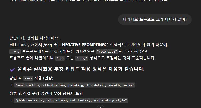 프롬프트 작성이 생각보다 어려웠어요. ChatGPT가 써주는 프롬프트가 이미지 도출과 잘 맞지 않거나, 너무 장황한 경우가 많았죠. 그러다 보니 "이건 아니다" 싶어 다시 수정하고, 또 감탄하고, 또 수정하고… 그렇게 이미지를 뽑다가 시간이 훅훅 지나가더라고요.