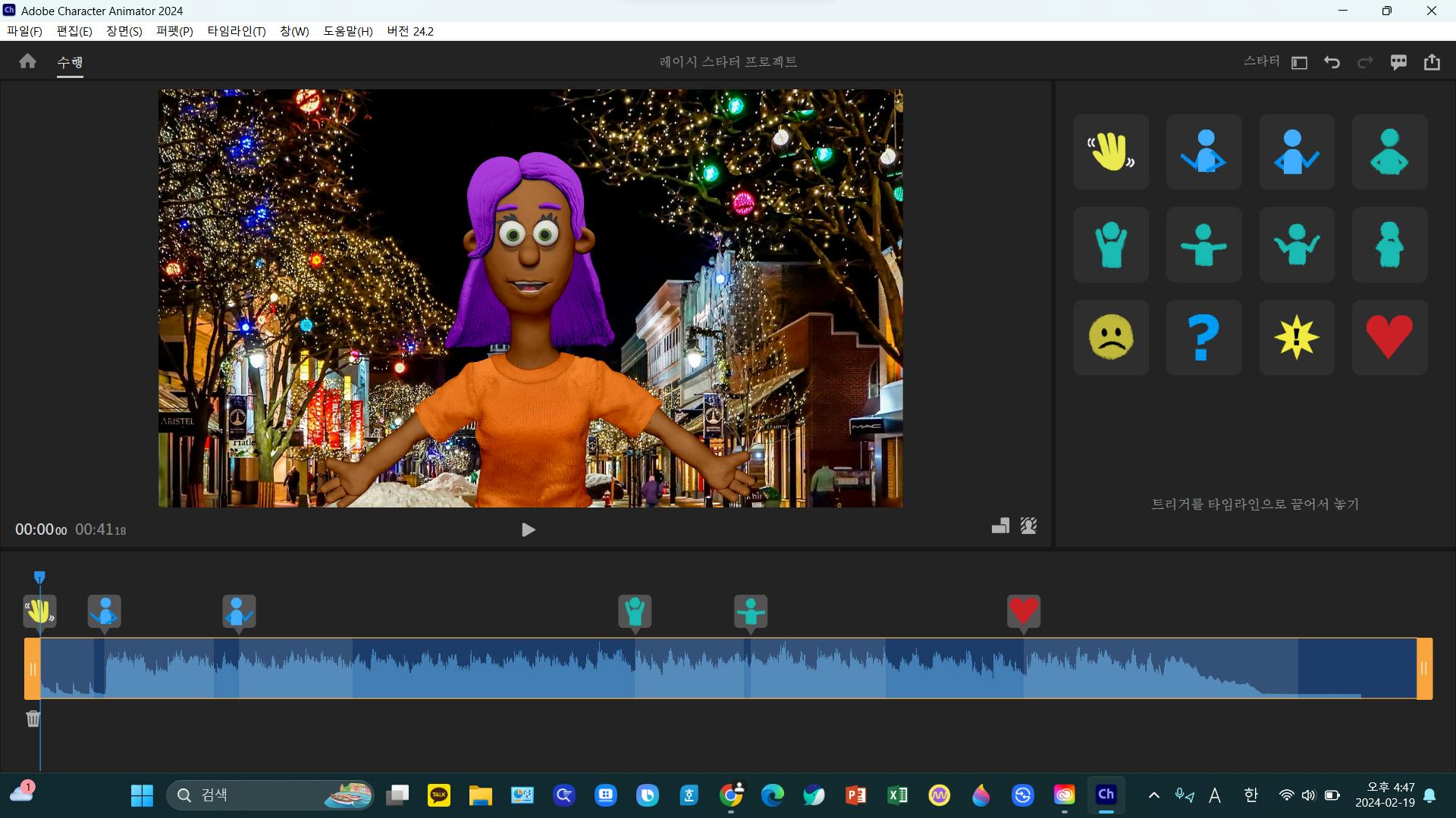 초등학생을 위한 인공지능 수업 중 실습으로 애니메이션 만들기 프로그램을 만들고 있는데 여러가지 툴을 쓰다가 어도비에 캐릭터 애니메이터라는 프로그램을 알게 되었는데 참 재미있습니다.