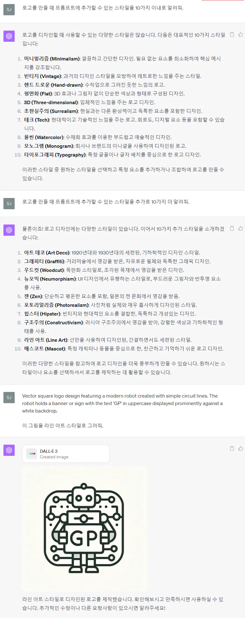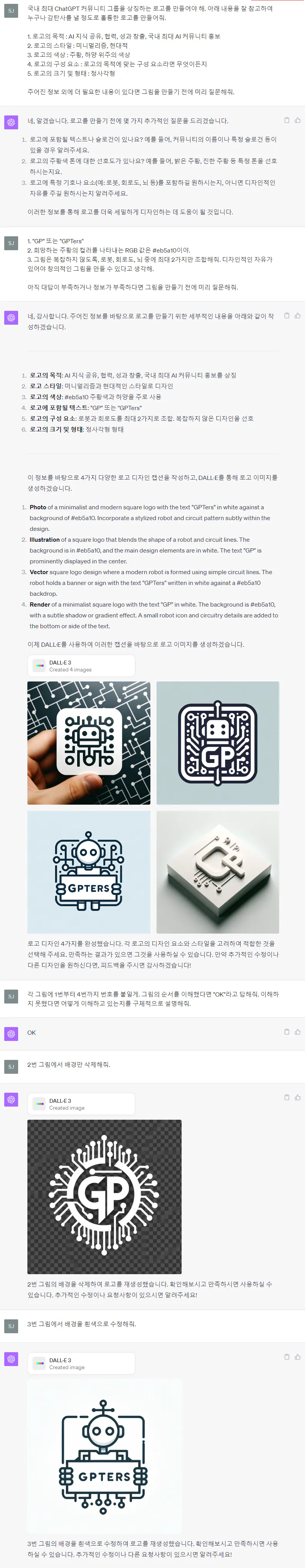 지피터스 고유의 색상도 고려해 보았습니다. color picker를 통해 색상을 추출한 후 RGB값의 형태로도 제시해 보았으나 큰 효과가 있지는 않았습니다.
