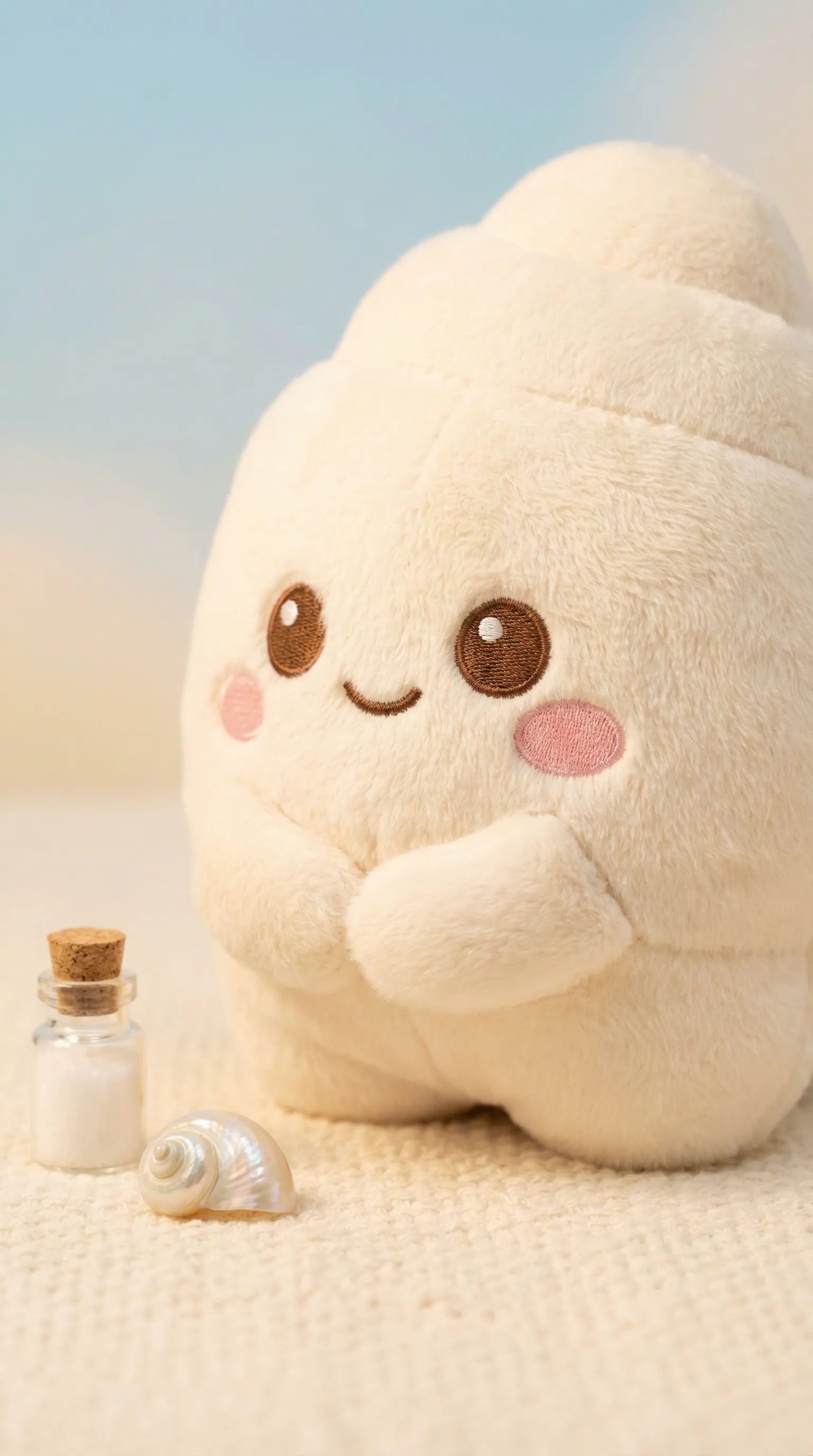 Visual: 노릇한 버터색 털뭉치, 수줍은 볼터치, 소금 알갱이가 반 짝임.