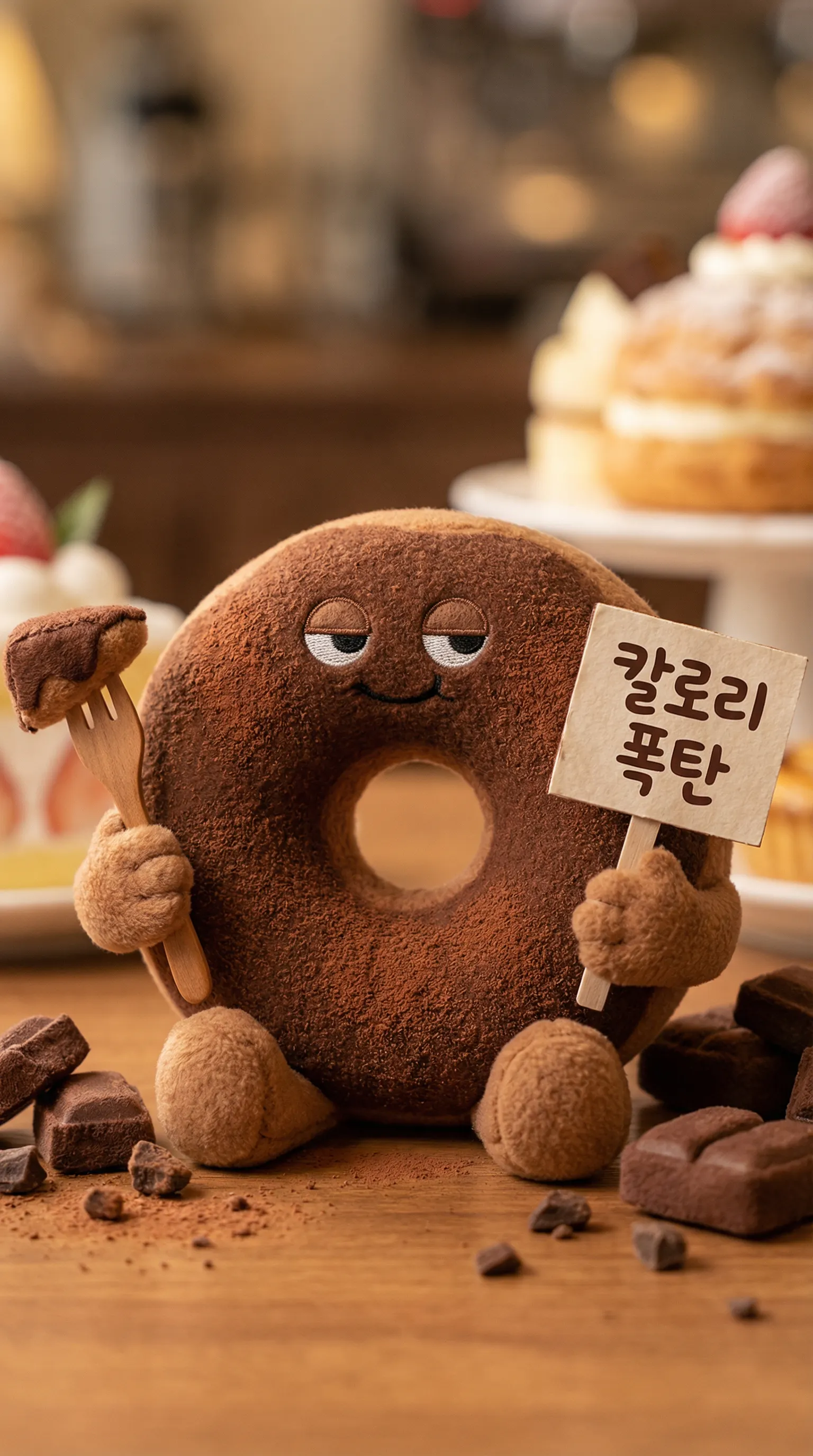 Visual: 진한 초콜릿색 털뭉치, 선글라스 착용, 흘러내리는 글레이즈 디테일.