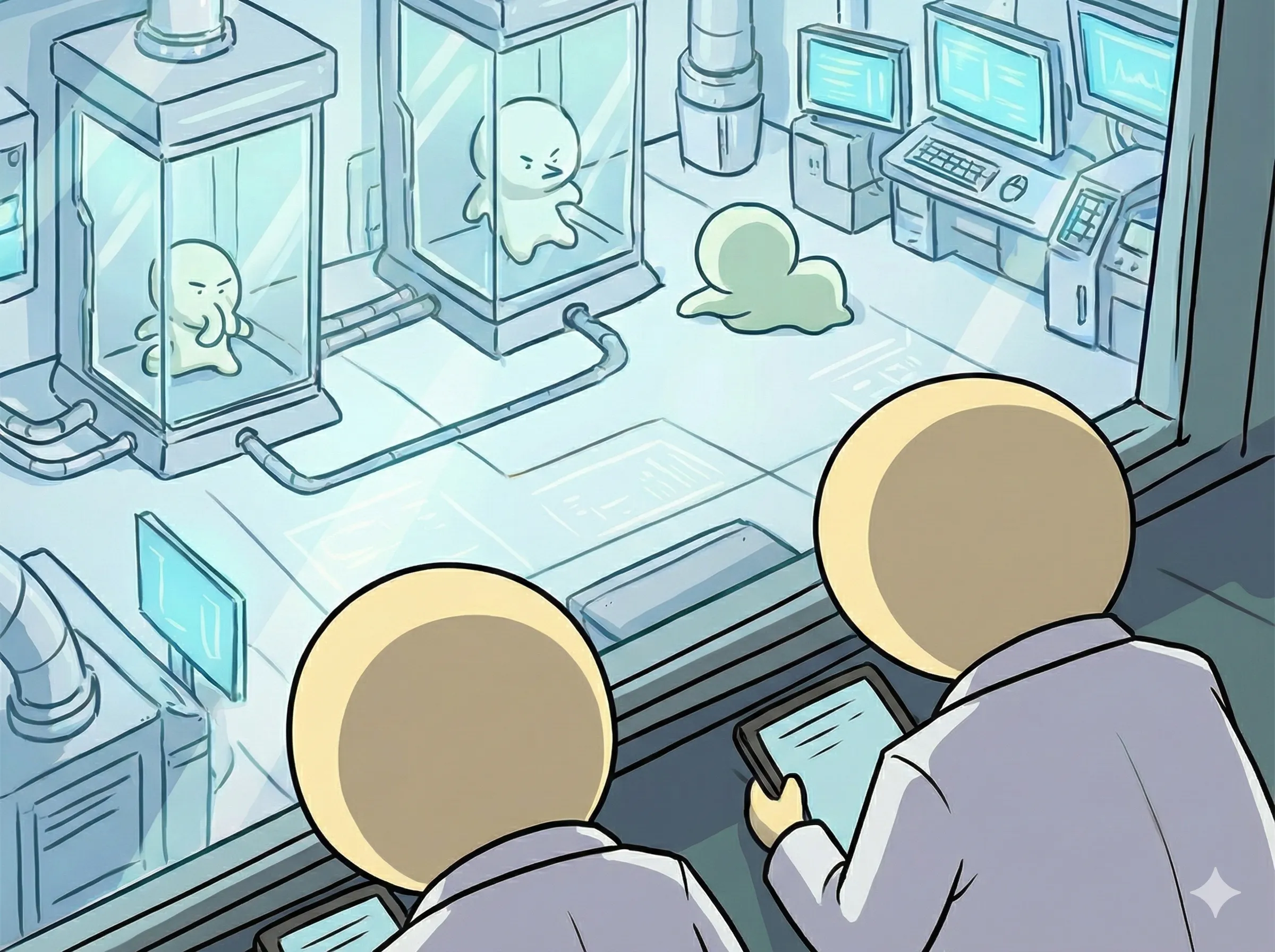 대충 이상한 존재들이 위에 층에서 이상한 존재들을 관찰하는 구도라고 설명을 했습니다.