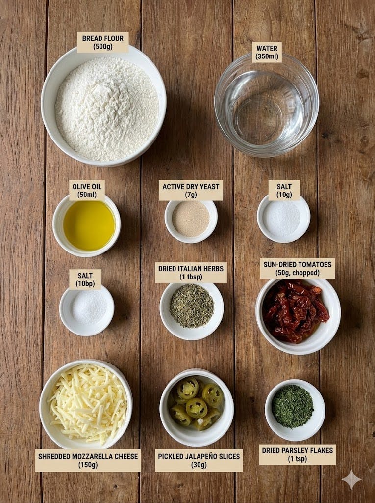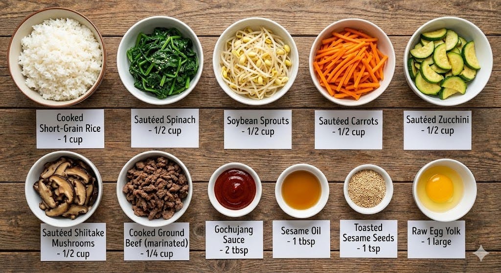 Show me a photo of all the ingredients for this dish, labeled with names and quantities.