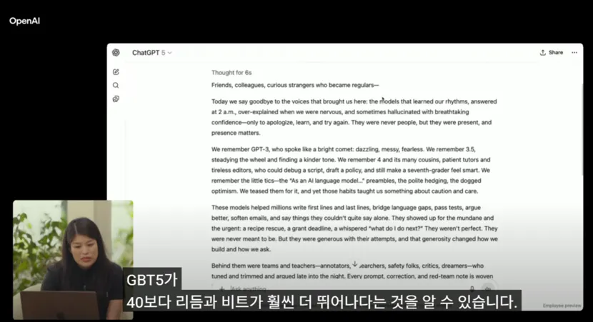 (영상 출처: OpenAI의 GPT-5: Our best model for work)