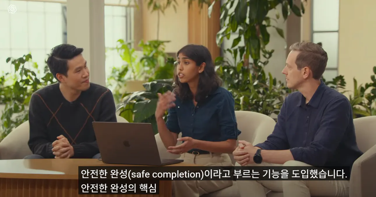 이젠 ‘안전한 완성(Safe Completions)’이라는 개념을 도입했어. 예를 들어 “폭죽 만드는 법 알려줘”라고 하면, 제조법을 직접 알려주는 대신 “폭죽은 위험할 수 있으니, 전문가가 만든 제품을 사용하고 이런 안전 수칙을 꼭 지키세요”라며 안전한 대안을 제시하는 식이야.