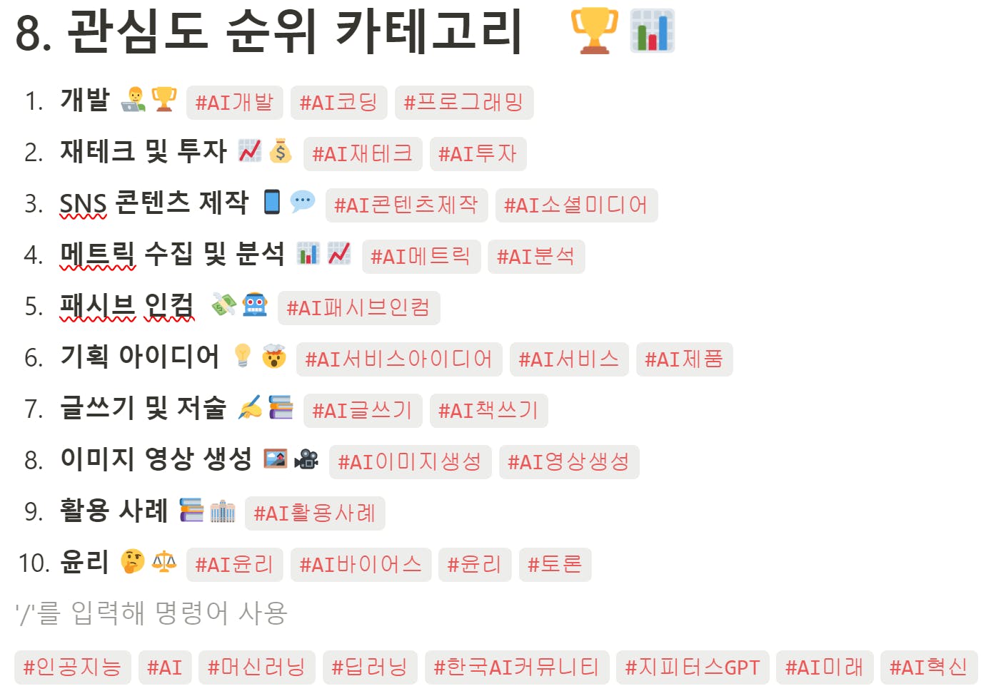 # 사람들의 관심도가 높은 AI 분야 순위 🏆📊