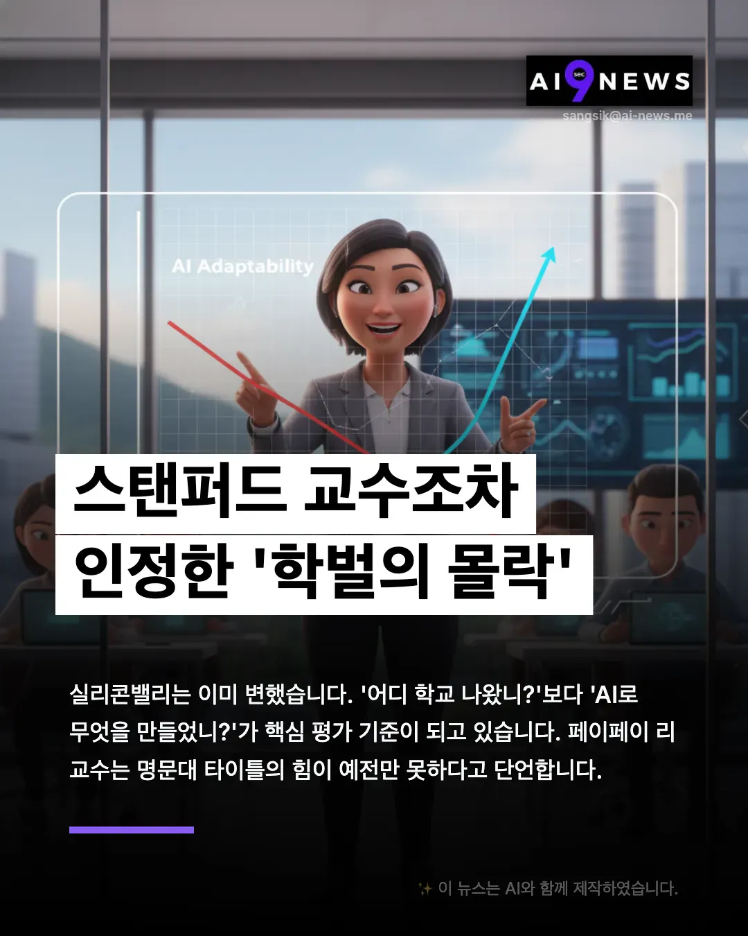 페이페이 리 교수님이 진짜 뼈 때리는 말씀 하셨네요. ㄷㄷ "이제 학벌보다 AI 활용력이다!" 🤯