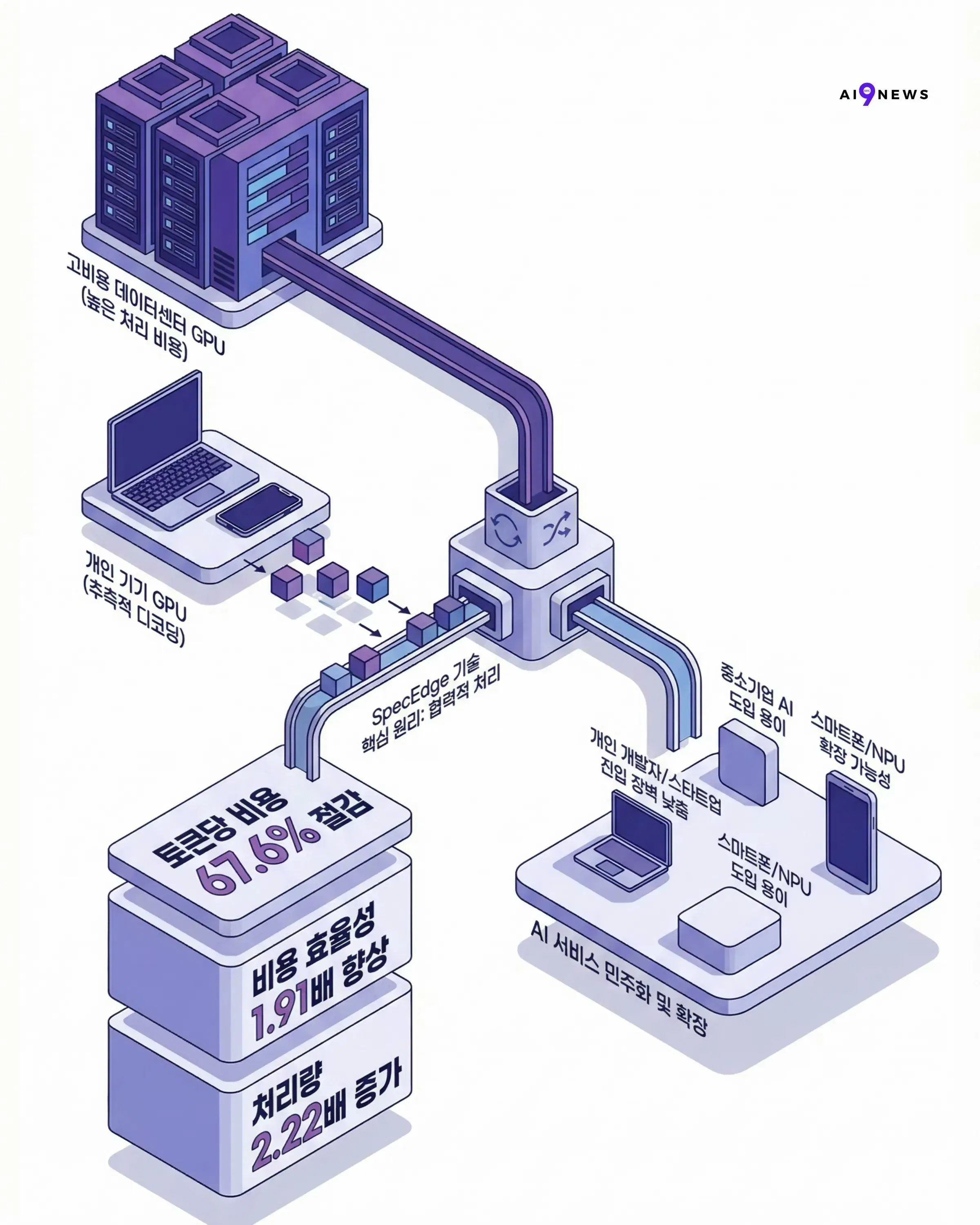 핵심은 'Speculative Decoding(추측적 디코딩)'을 온디바이스와 서버 간 협업으로 풀어낸 건데요.