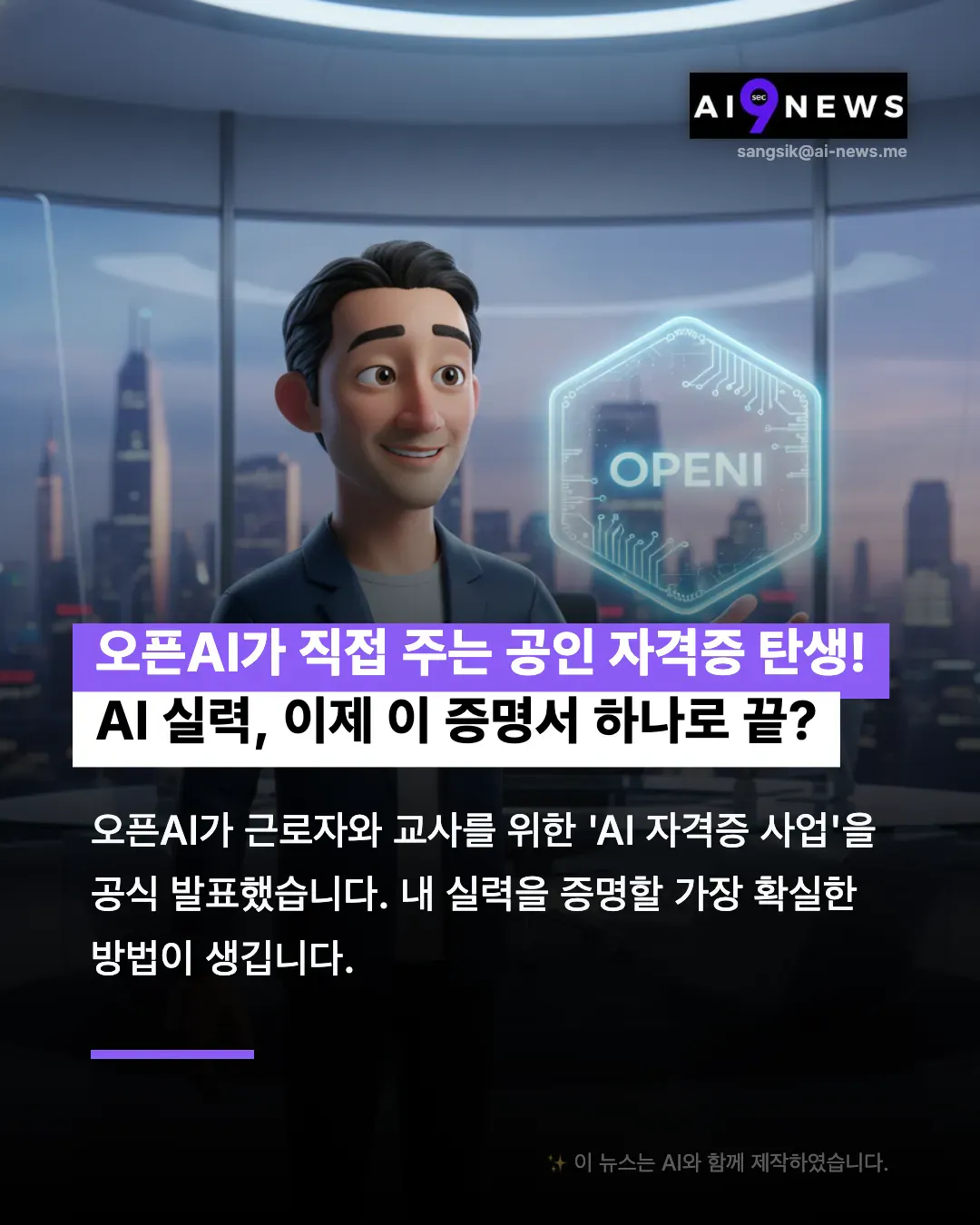 ์•ˆ๋…•ํ•˜์„ธ์š”, ์ง€ํ”ผํ„ฐ์Šค ์—ฌ๋Ÿฌ๋ถ„! ์˜คํ”ˆAI๊ฐ€ ์ง์ ‘ 'AI ์ž๊ฒฉ์ฆ'์„ ๋ฐœ๊ธ‰ํ•œ๋‹ค๊ณ  ํ•˜๋„ค์š”.