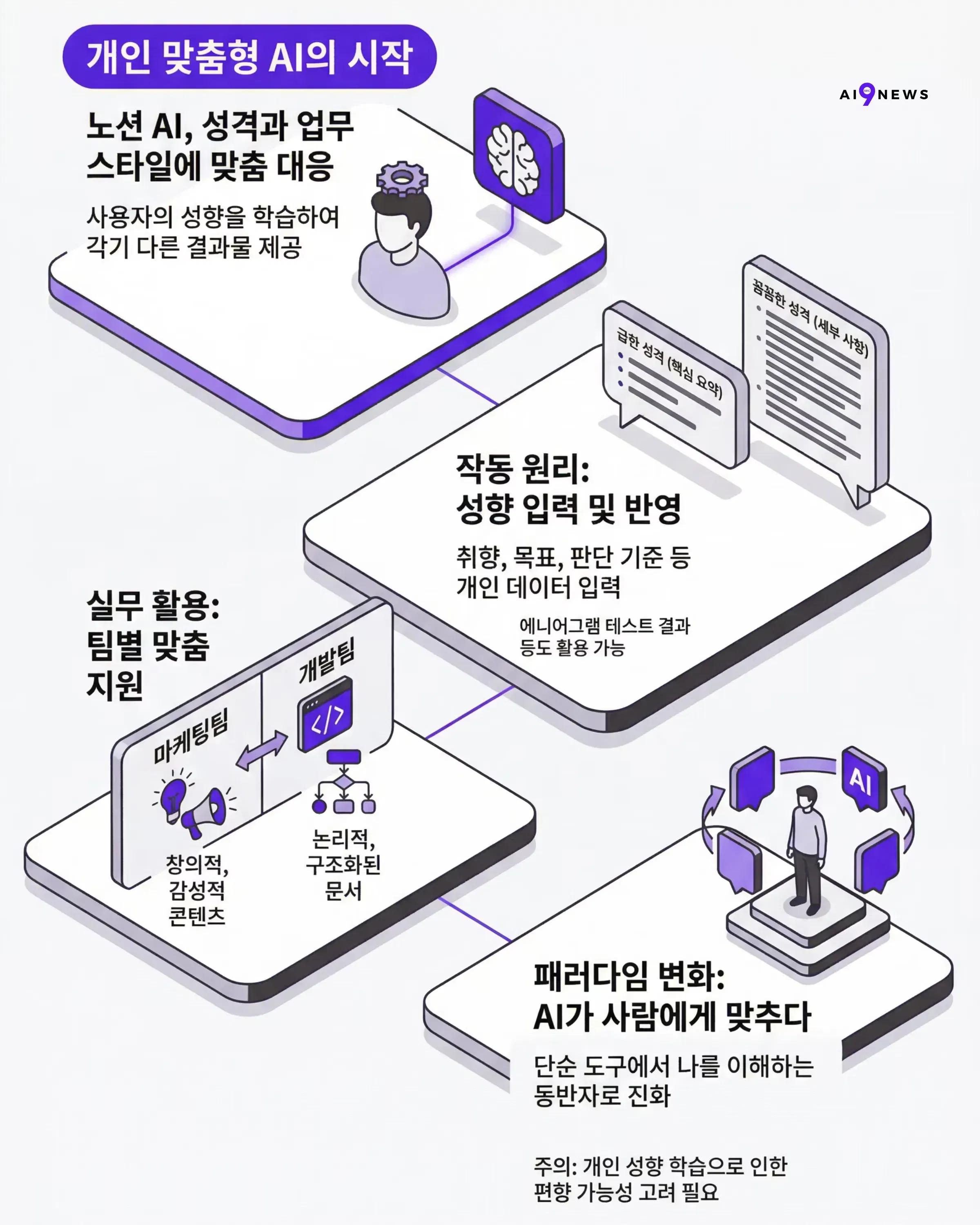 이제 시스템 프롬프트를 우리가 매번 짤 필요 없이, 아예 내 성격(에니어그램 등)이나 선호 스타일을 프로필에 박아두면 AI가 알아서 페르소나를 맞춰줍니다.