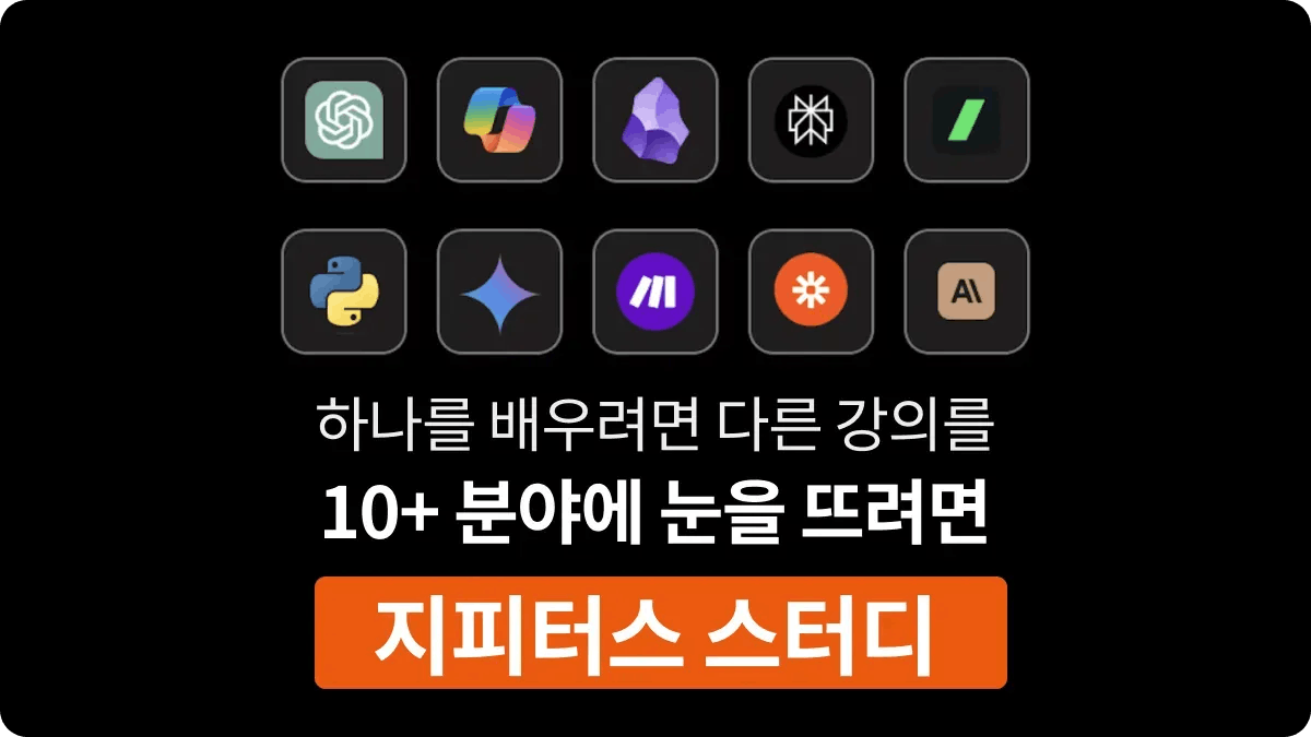 하나만 배우려면 다른 강의를, 10+개 분야에 눈 뜨려면 지피터스 스터디에 참여하세요.