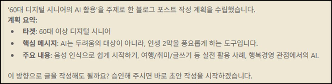 • Claude Code Agents를 활용하여 기존에 썼던 블로그 글을 개선하도록 수정하고, 새로운 주제의 블로그 글을 자동으로 작성하도록 시도하였습니다.