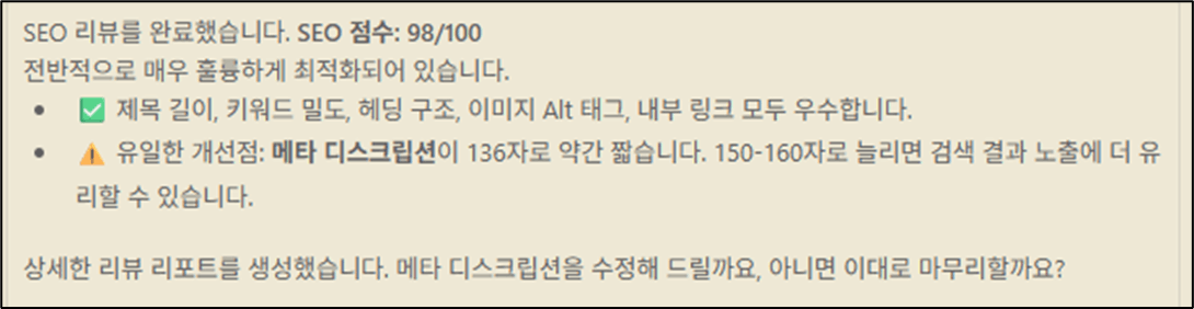 ② 내 블로그에 쓴 내 글에 대해 seo-reviewer 적용