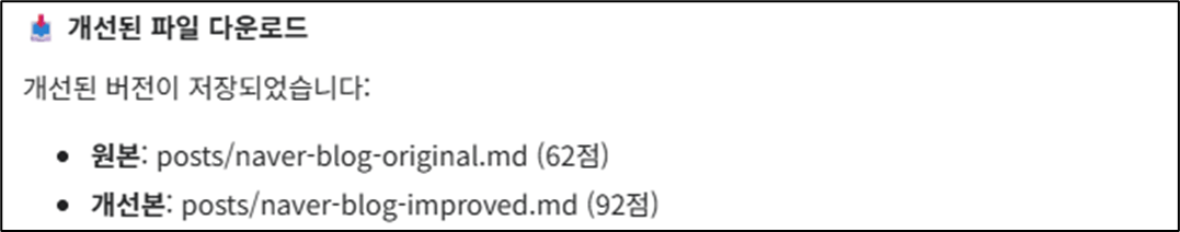 - 개선된 블로그 글(98점) : https://blog.naver.com/father_happy/224086796584