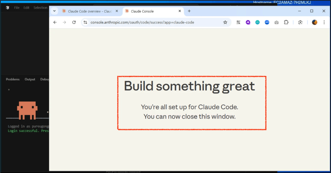 - 스터디장님께서 공유해주신 slashpage에 있는 ‘Claude Code 설치하기’에 따라 Node.js를 설치하고, Claude code를 설치했음. 이어 Claude code 로고가 보이는데 매우 감격했음. 그리고 오랜만에 보는 Terminal 화면이 과거 'DOS' 화면을 연상하게 하여 반가웠지만 검정색 화면에 커서만 깜빡이는데 약간 불안하기도 했음.