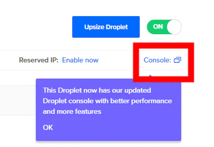 프로젝트가 생성되면 아래 파란색줄에 있는 Droplet을 누르면 console이 나온다