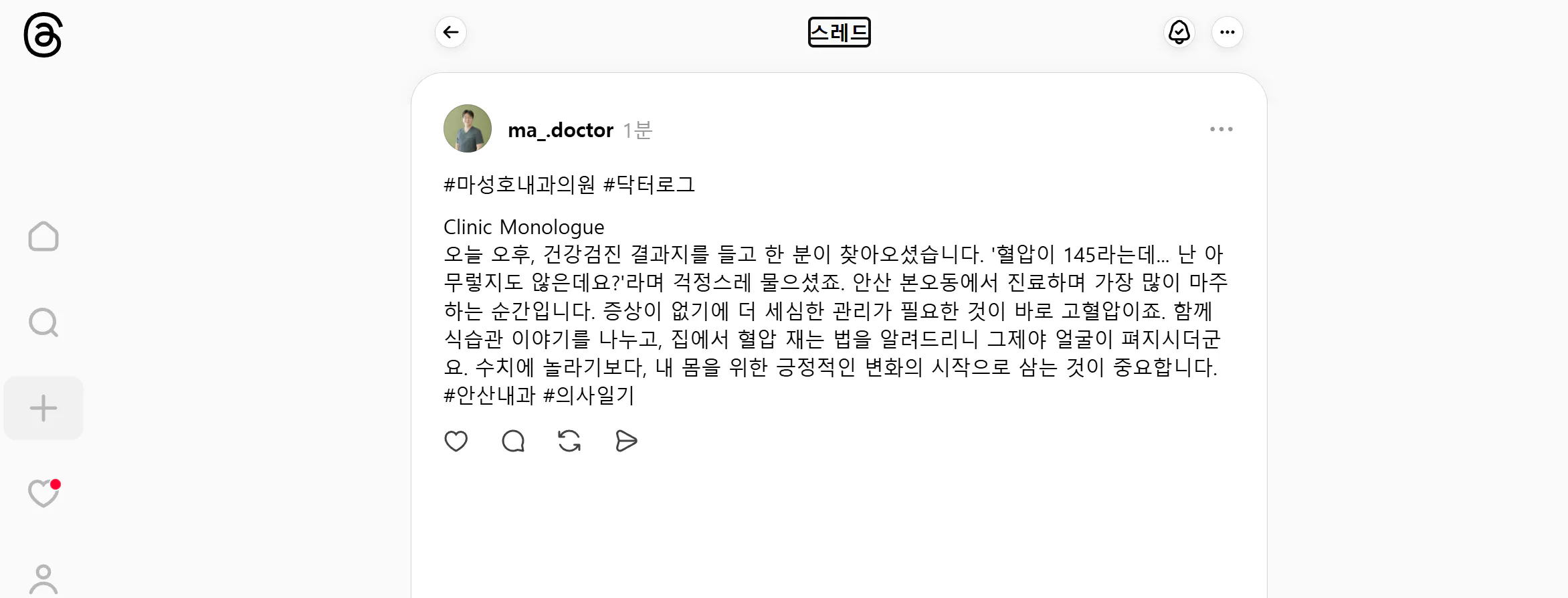 나는 리서치는 하지 않아. 나는 마성호내과의원을 운영하는 의사야. 써야할 주제는 이미 정해져 있거든. 나는 주로 네이버 블로그에 의학 블로그를 작성하고 유투브에 쇼츠로 의학 내용을 올리고 의학에 관련된 뮤직비디오도 만들지. 같은 동영상을 인스타와 틱톡에 올리고 있어. 스레드도 활용하고 있고 앞으로는 X도 활용하려고 하고 있지. 이과정에서 어려운것은 시간이 많이 걸리는 거야. 가장 고민되는 문제는 팔로워 수 증가가 느리다는 것과 조회수를 많이 올리는 것이 중요하거든.