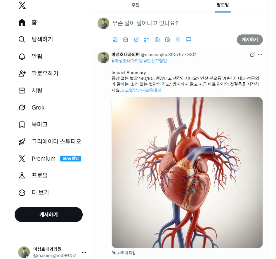 하지만 리서치 단계를 생략하고 계신 점이 바로 말씀하신 '조회수와 팔로워 증가 정체'의 핵심 원인일 수 있습니다. 의학 정보는 정확성만큼이나 '사람들이 지금 궁금해하는 방식(트렌드/키워드)'으로 전달되는 것이 중요하기 때문입니다.