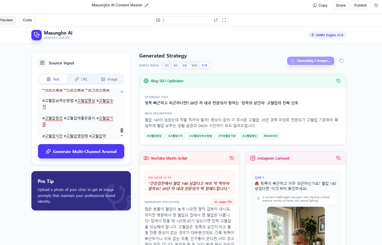 • System Role: An AI-driven SNS content automation factory designed exclusively for 'Dr. Masungho' (a 20-year veteran internist).